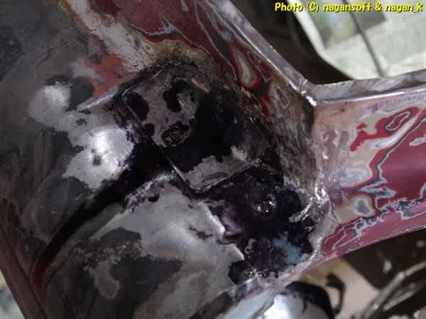 フェンダー固定ネジを受け止めるブラケットが溶接固定されているのですが、そのブラケット縁が凄く盛り上がってます。