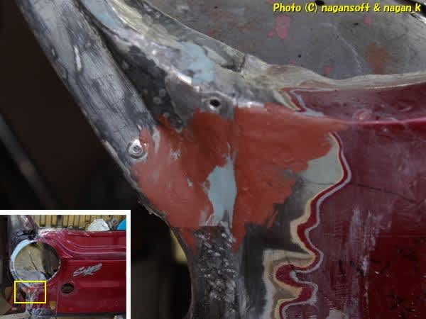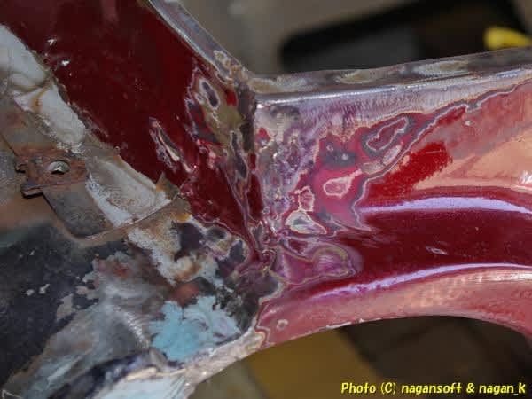 フロントパネルとフェンダーエプロンのトランク縁立ち上がり溶接箇所です。