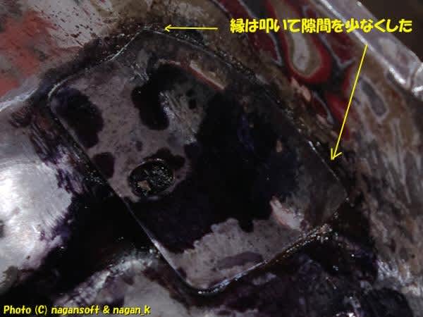 その後に合わせ部分の縁とか鉄板浮いている箇所をハンマーで叩いて隙間を少なくしました。