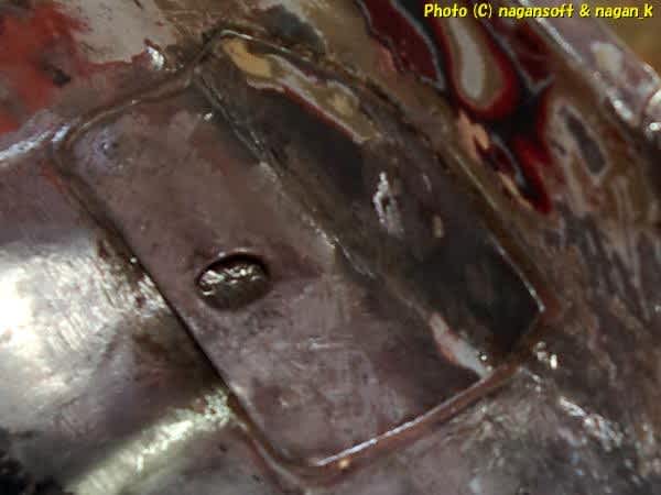 リューターの刃先が届くところ、かつ、私が覗き込んで確認できるところの錆と思われる箇所を削りました。