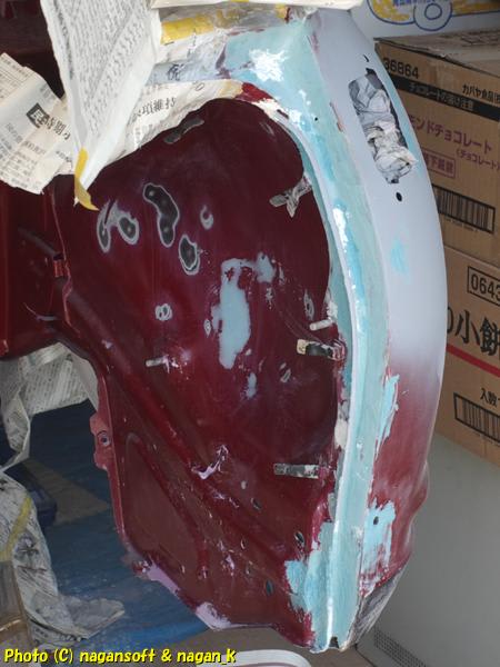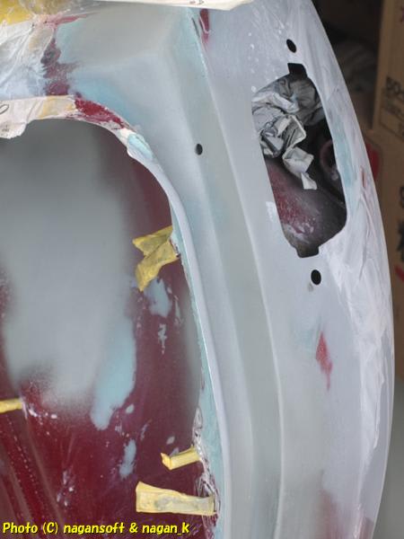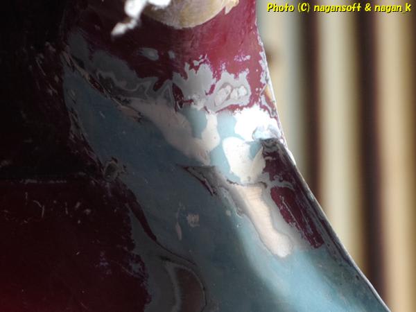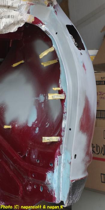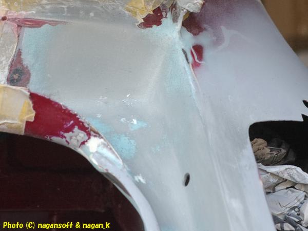 鉄肌まで前塗装をめくらないで、塗装を荒らしてパテしていった部分です。
