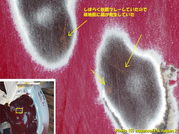 きっと、数日の放置プレーで微妙な塗膜クラックから湿気を吸って育ったのかねー。
