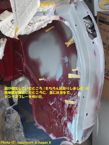 綺麗に研磨したところで、鉄肌が露出しているところを狙って、「念には念を」ということで、ジンクスプレーを吹き付けました。