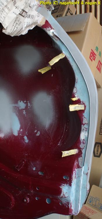 この上の鉄板合わせ部分のパテ整形が以外に難しいんですよ。