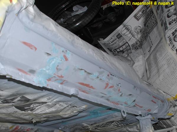 サイドシルにペーパーを当てて、ひたすらシコシコです。