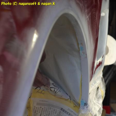 もちろんフェンダー内側から押し出すといった、むだな努力は試みましたが駄目でした。(ある程度出ましたがド素人が内側から押しただけで深い海峡が綺麗に整形できるはずがない)