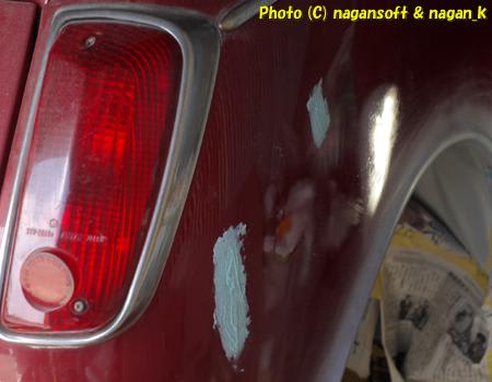 後右フェンダー表面に、父親がつけた目立つへこみがあります。