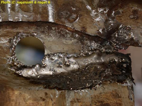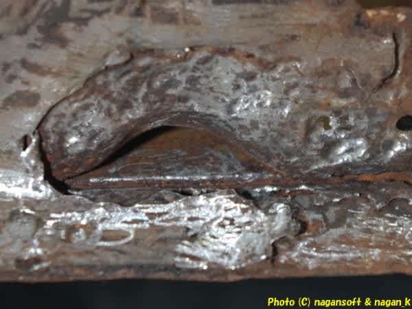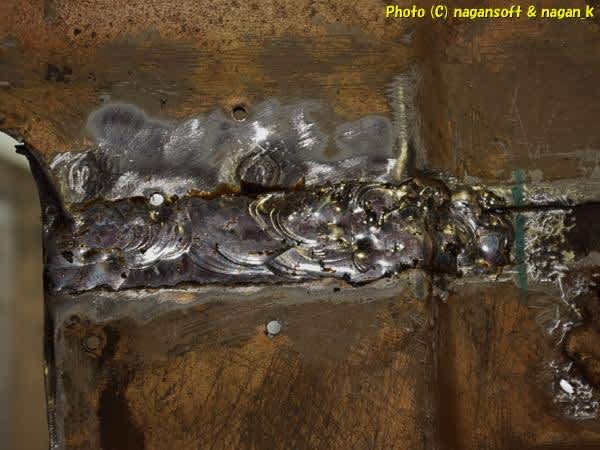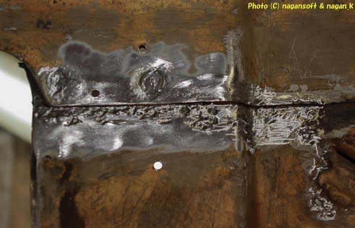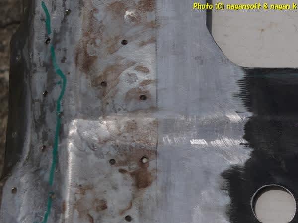 これを正当方で修理するとなると、合わさっている箇所を両方の鉄板を切り捨てて新たに鉄板を接ぐというのが本当だと思います。