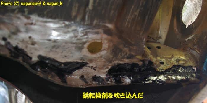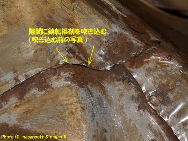 錆が残っているので錆転換剤(レノバスプレー)を吹き込みます。