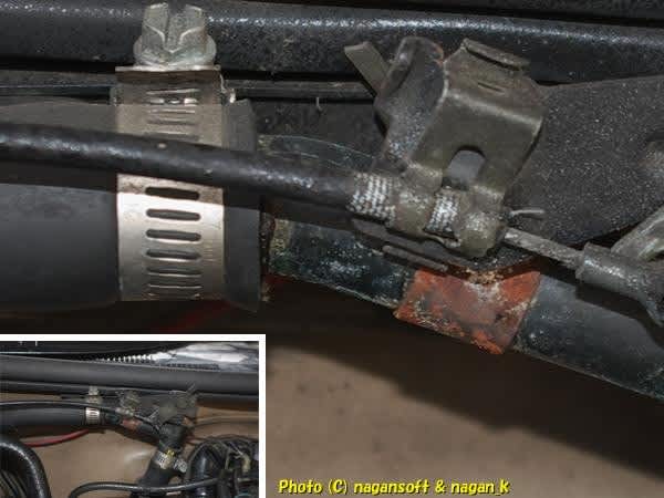 このナット回せるかなー。固着していないかなー。と思うのでCRC556を吹きかけておく。(そのうちに交換する計画を….)