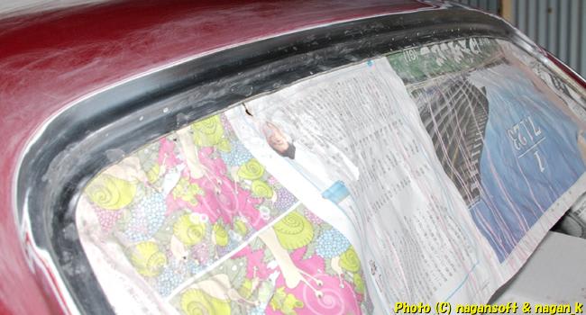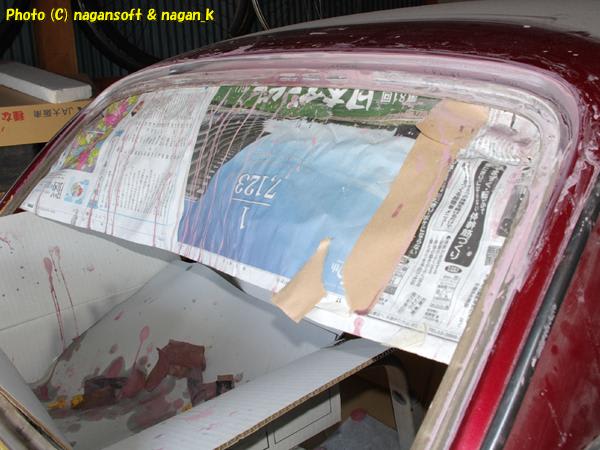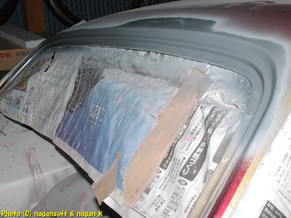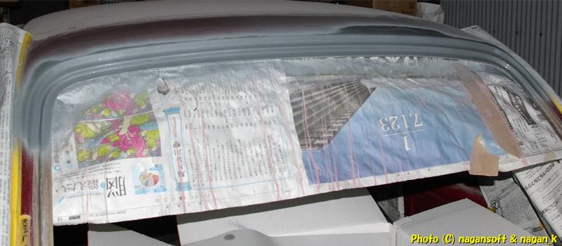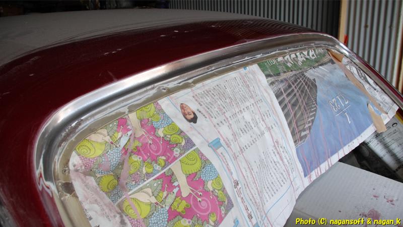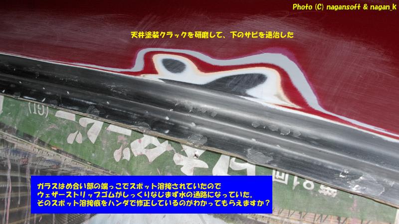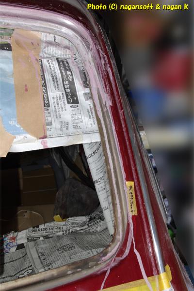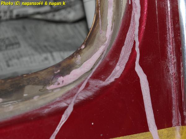 R-2君、リヤガラスはめ合い部、上部分のサビ取り研磨修正完了