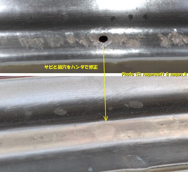 錆びが一杯出現した部位はサビ研磨したら穴が開きました。