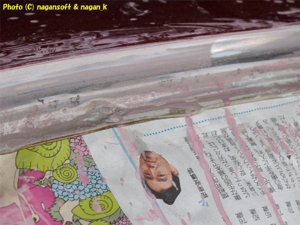 研ぎ汁は塗装の色がついてます。つまり、色水が垂れているのです。
