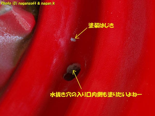「ハジキ」が出たのと、水抜き穴の入り口内側に色が乗っていないこと。
