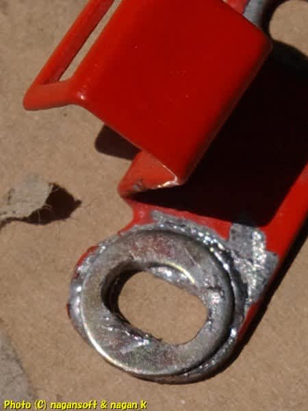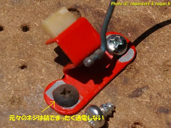 まず、元々車体に固定していたネジは錆び過ぎていてまったく通電しません。