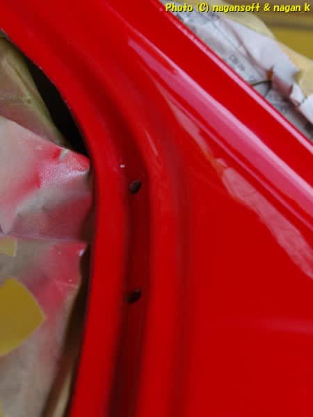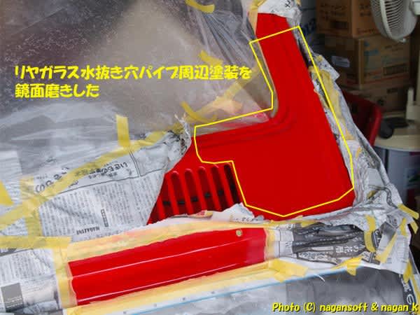 リヤガラス水抜き穴パイプ周辺補修塗装した部分を、鏡面磨きしました。