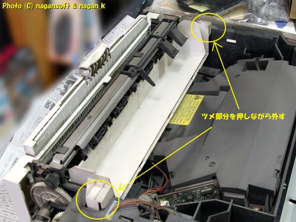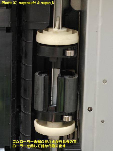 給紙ローラーを挟み込んでいる白いカラーのような部品にストッパーがありました。