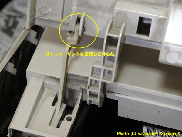 ちなみに、上カバー開閉ストッパーのリンクを外すことができるようであれば、最初に外しておくことを強く推奨します。