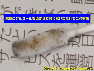 面棒にアルコールを浸して、さらっと拭いたらこの有様です。