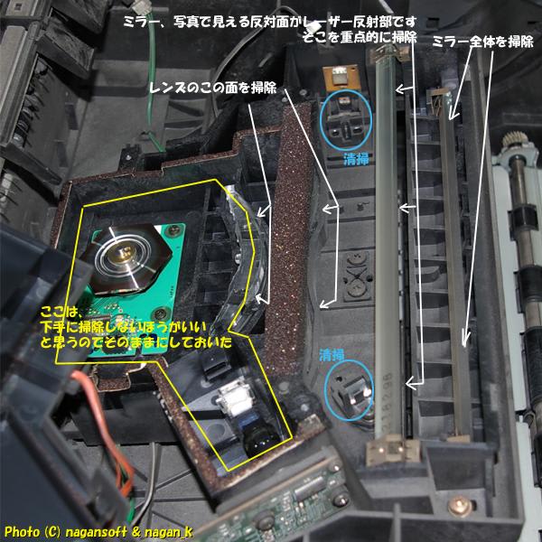 私の乏しい知識では、これはレーザーユニット内のレーザー拡散レンズ、および、ミラーが汚れているのが原因と推論します。