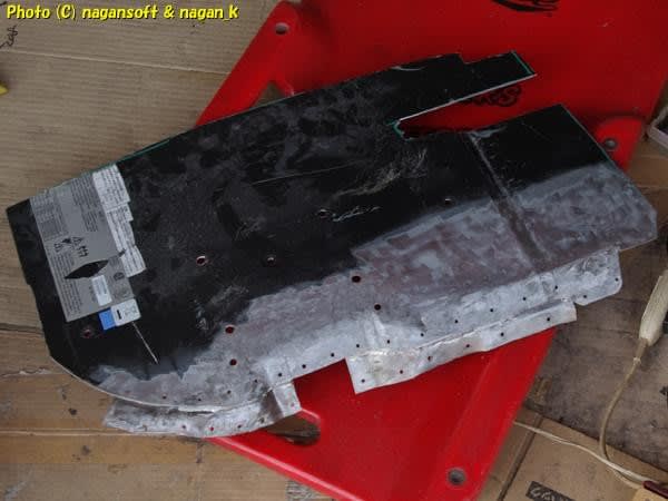 そうそう、次の仕事で鉄板貼り付け箇所となりそうな部位の塗装剥がしもしておきました。(塗装剥がしに90分かかったぞ。仕事が遅いぞ。)