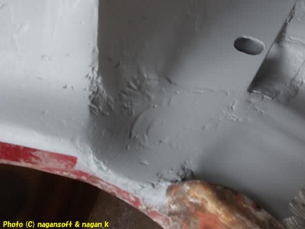 まあーねー、パテ盛りがいい加減だからこんな「ス」というか盛り付け不足の谷筋ができるってもんですよ。