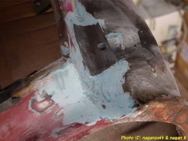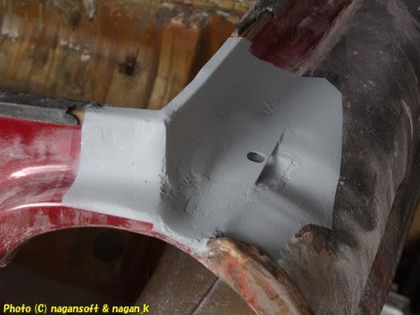 前回に「左前フェンダー上トランク縁の前の方」に気分が乗らなくて適当にパテをなすくって終了しました。