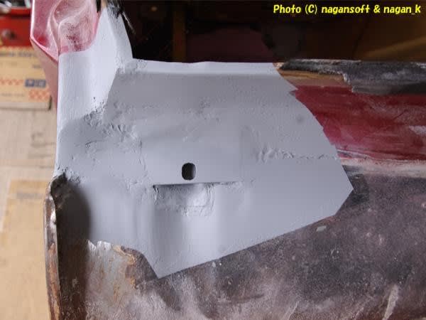 しばらくは天候悪くなるっていうてたし、錆止め目的でとりあえずのプラサフを吹くことにします。