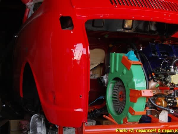 エンジンルームエプロンとリヤバンパーを取り付けすると、磨けなくなる部分ができるのよね。なので、その部分を特によく磨いて鏡面にしておきました。