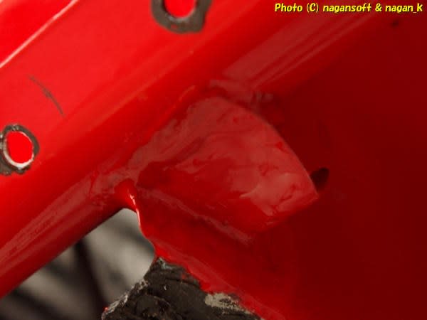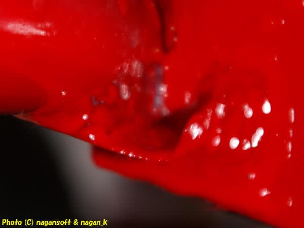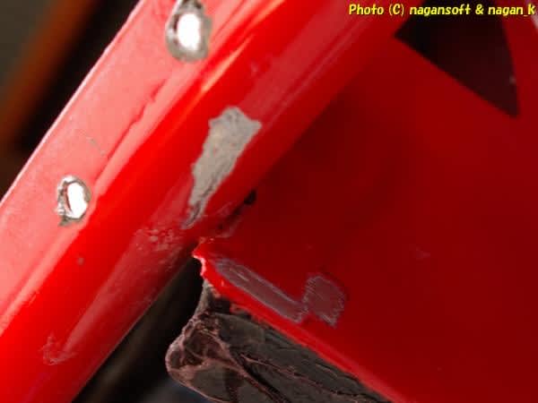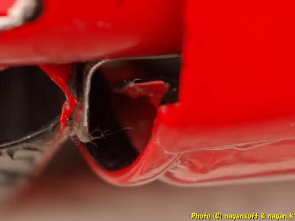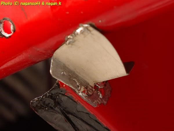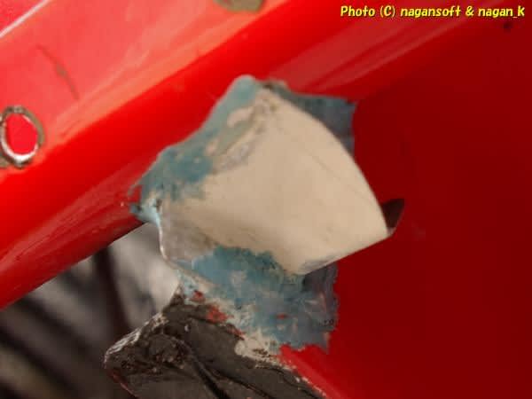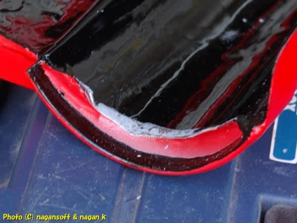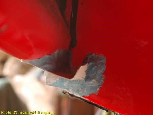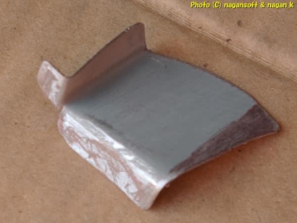 貼り付けする部分の塗装を剥がします。あーあ、せっかく色を塗ったのにキズ物にしちゃってるよ。