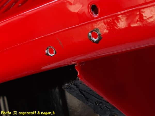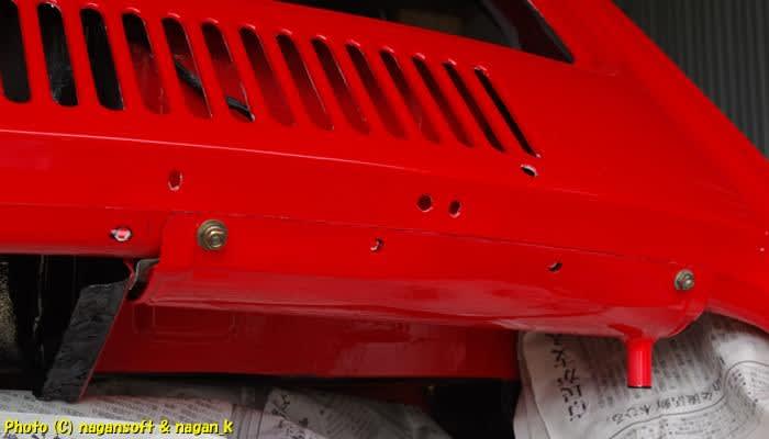 えーと、リヤガラス水抜き穴にパイプ取り付け部分のエンジンルーム側へPOR-15を塗った後の写真撮影を忘れているのよね。
