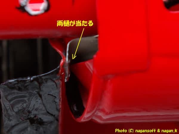 この鉄板合わせ部分が水が落ちてくるポイントになります。