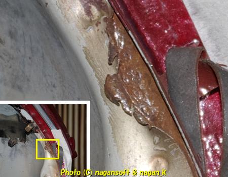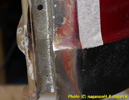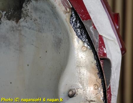 ともかく、この部分のサビ穴塞ぎは苦戦しました。