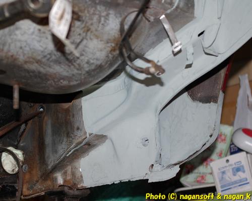 これで、左右のリヤフェンダー大錆び穴ふさぎを終了とします。