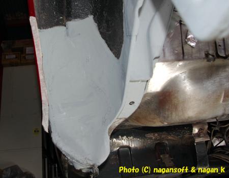 そして、この鉄板を貼付けました。車体の下に潜り込んで、ハンダ鏝を上にかざして作業するのは苦痛でした。