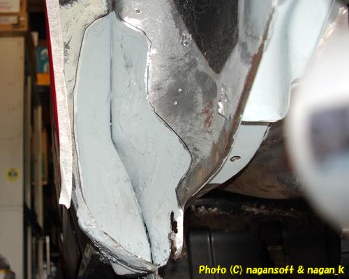 今回の作業で、左リヤフェンダーの大サビ穴がふさがりました。