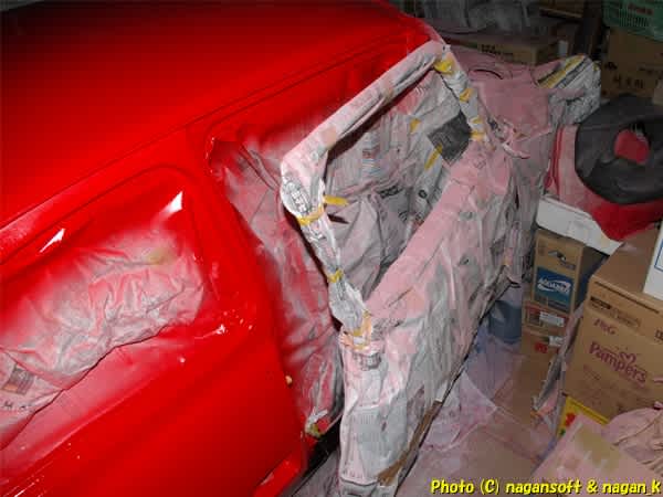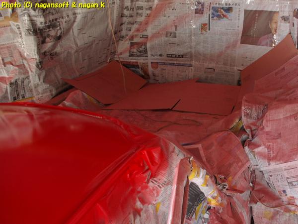おおがかりな塗装ではないので壁マスキングは外しましたが車体のマスキングと床に敷いたダンボールはまだそのままにしておきます。