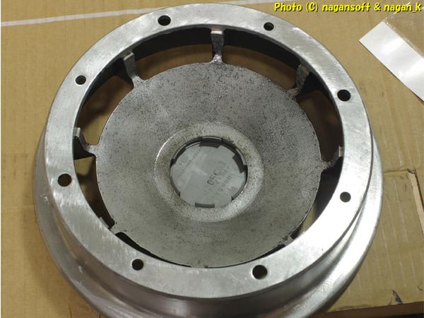 では、ホイールをひっくり返しまして、穴の中から合体の様子を確認です。