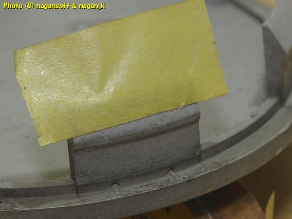 ともかくどのくらい雁が足りないのか、ホイール裏に飛び出している亀頭にテープを貼ってみました。