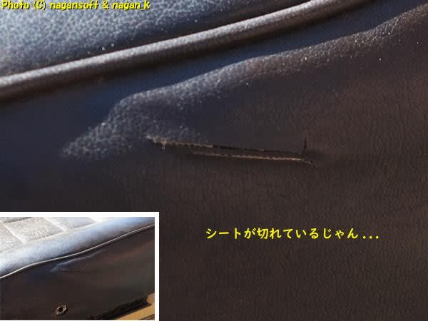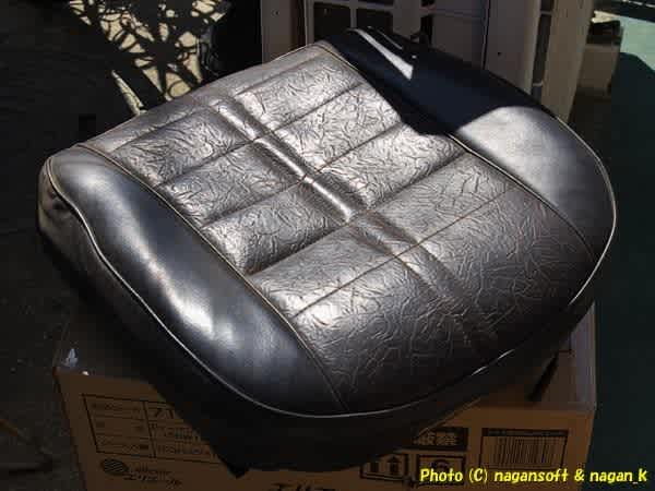 私の車体の運転席シートは痴呆親父の破壊改造により車体にシートを溶接固定されてました。溶接しているので固定金具がダメになっているのはもちろんですが、溶接火花でビニールシート表面に小さい穴がアチコチに、さらに熱でとろけている箇所もあるんです。
