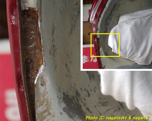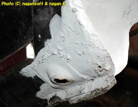 こういった部分をリューターで錆びを削れるだけ頑張って、サビ転換剤で処置しました。