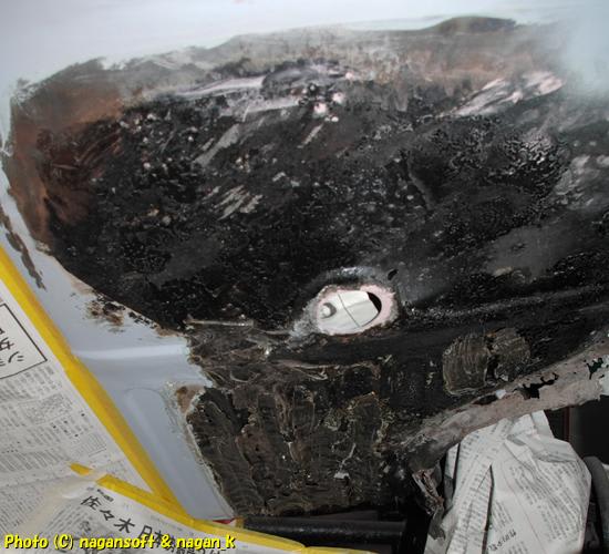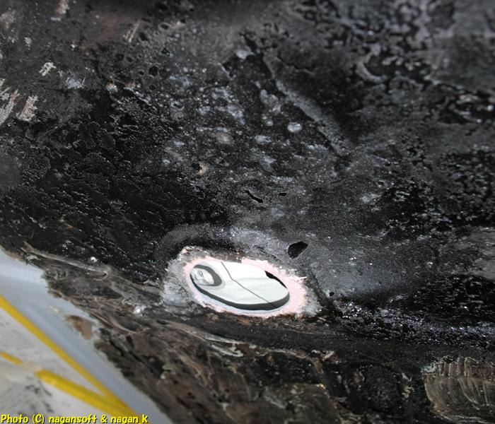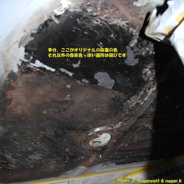 どうして前オーナーは錆びを削らないで、この超硬い黒色塗料を塗って錆びを隠ぺいしているのかはなぞなのです。というか、これがPOR15と仮定したら、錆びの上から塗れるとかを売りにしているからねー、それを信じて錆びを削らないで塗っている可能性があるのよねー。