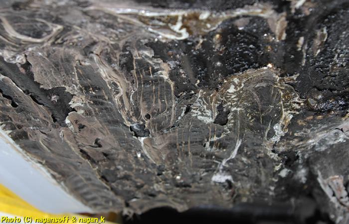 すると、しっかりとしたテラテラの黒色地肌が境界線くっきりで現れました。