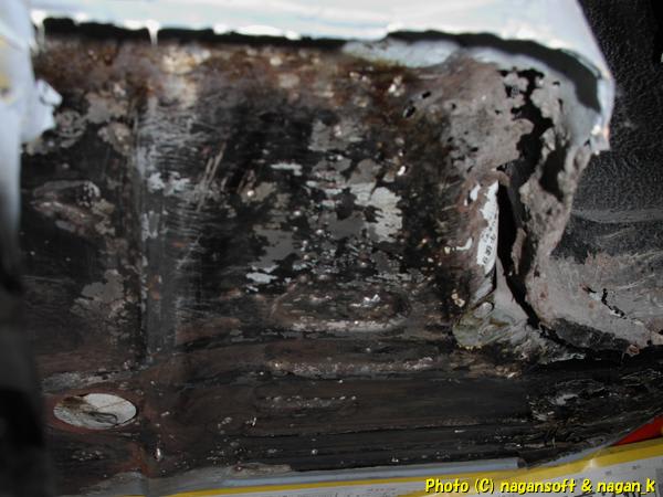 いよいよ運転席床裏です。ここは手ごわそうなのよねー。