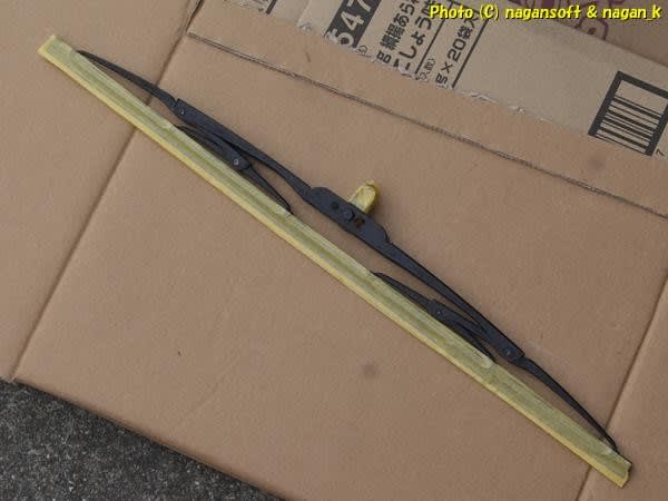 助手席側のワイパーゴムは交換しませんが、ブレード台座は塗装が剥げているので塗装します。もちろんゴム部分はしっかりマスキングですよ。