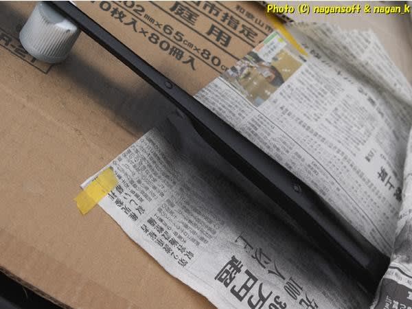 適当にマスキングしまして、適当にシャーシブラック缶スプレーをシューってやっちゃいました。
