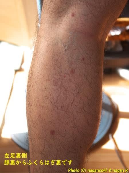 左脚の裏側です。膝裏からふくらはぎ裏です。
