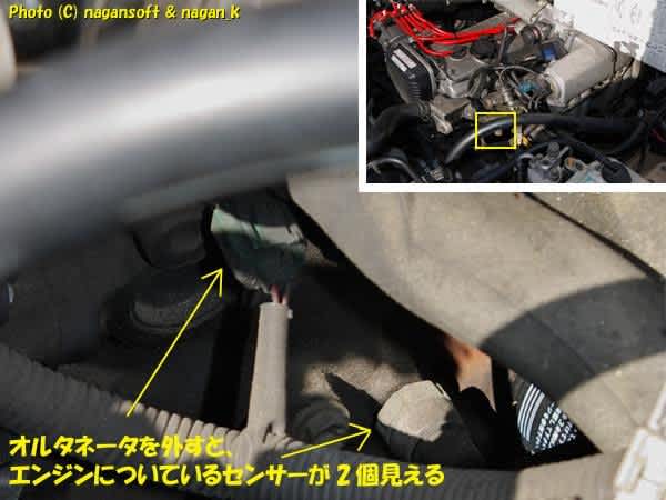 ふむふむ。このセンサーを交換するときはオルタネータを外したほうが作業しやすいということか?と余計なことも学習しておきます。