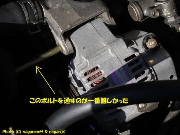 ベルト張り調整をします。中古のオルタだからねー、それも私の手元で6年ほど寝てたからねー。いきなりきついめではなく様子見をしたいので….