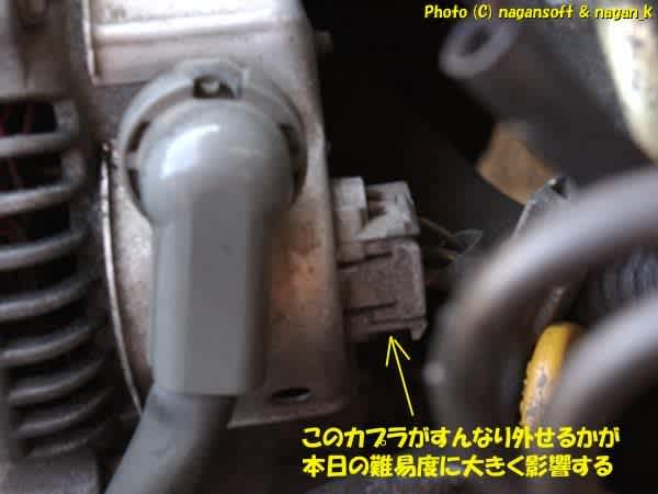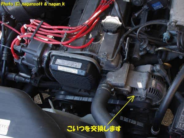ボンネットを開けてオルタネータは目の前にあります。